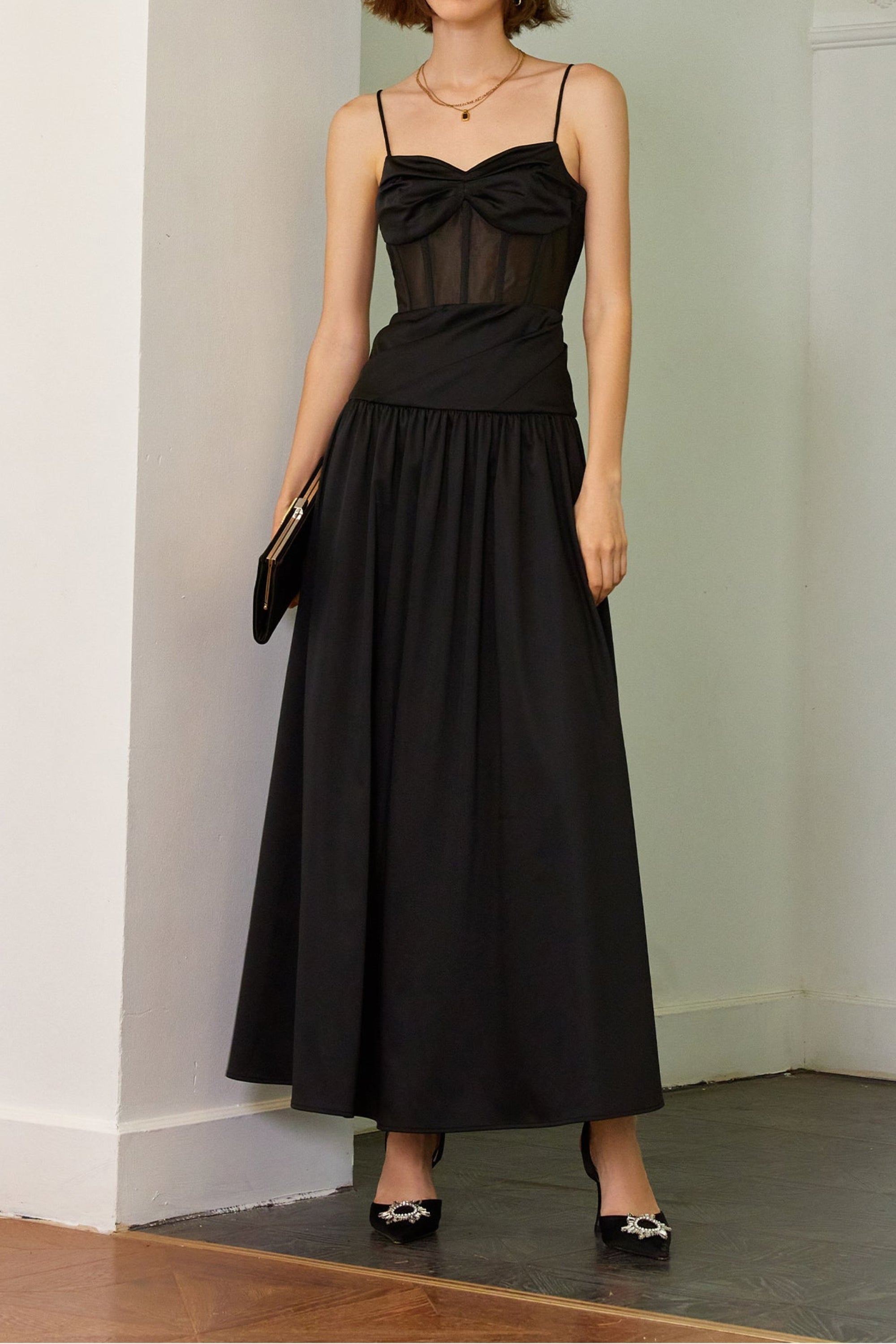 Blush Satin Sleeveless Mock Neck Maxi Dress