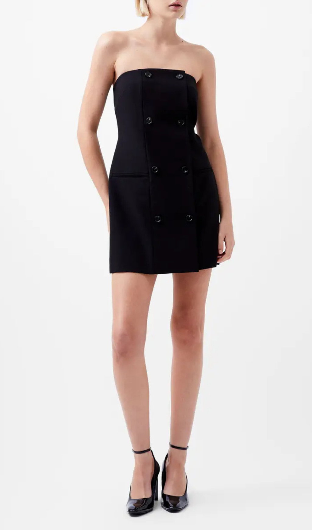 Double Breasted Strapless Twill Mini dress in black