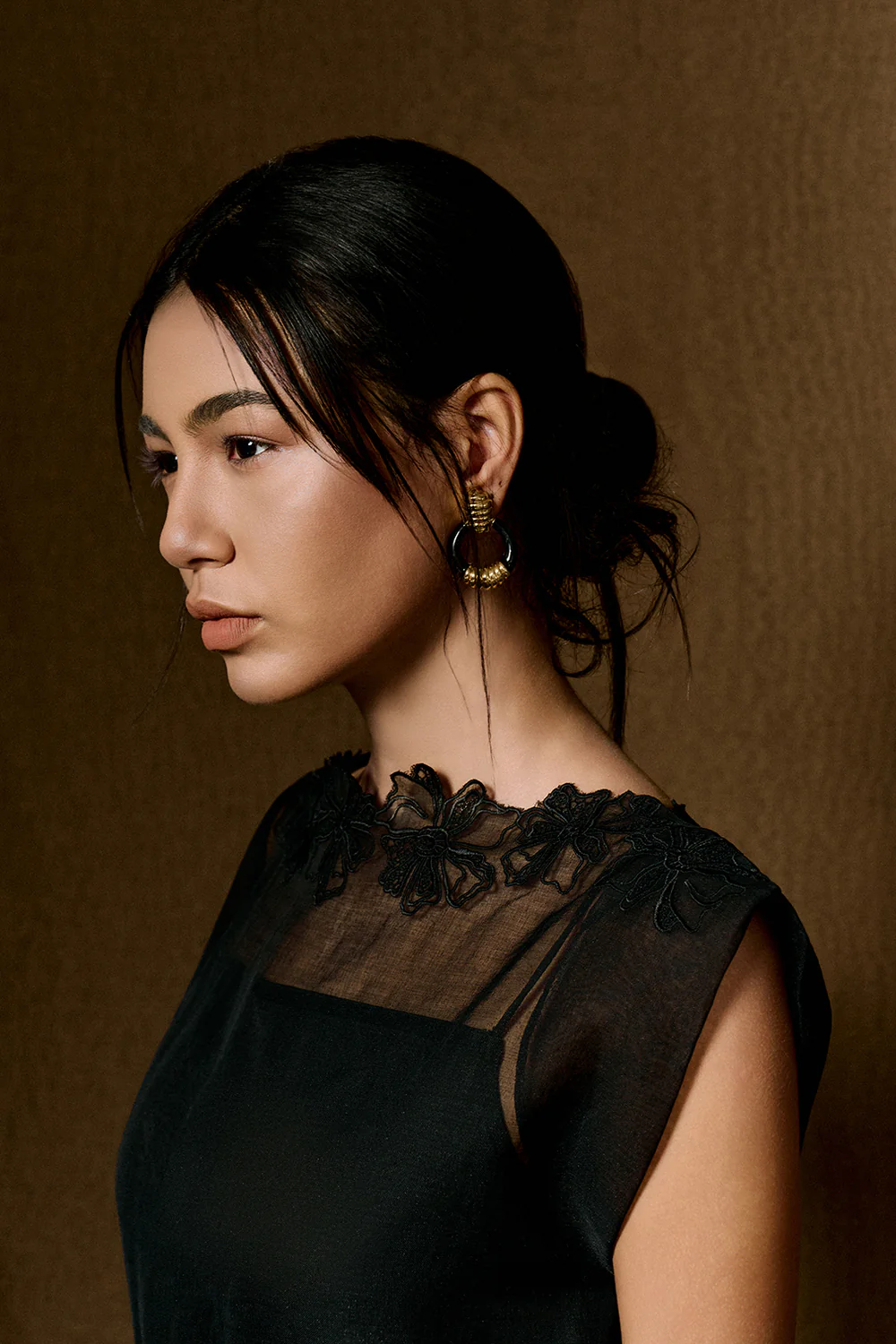 Sorbonne Straight Round Neck Silk Chiffon Mini Dress