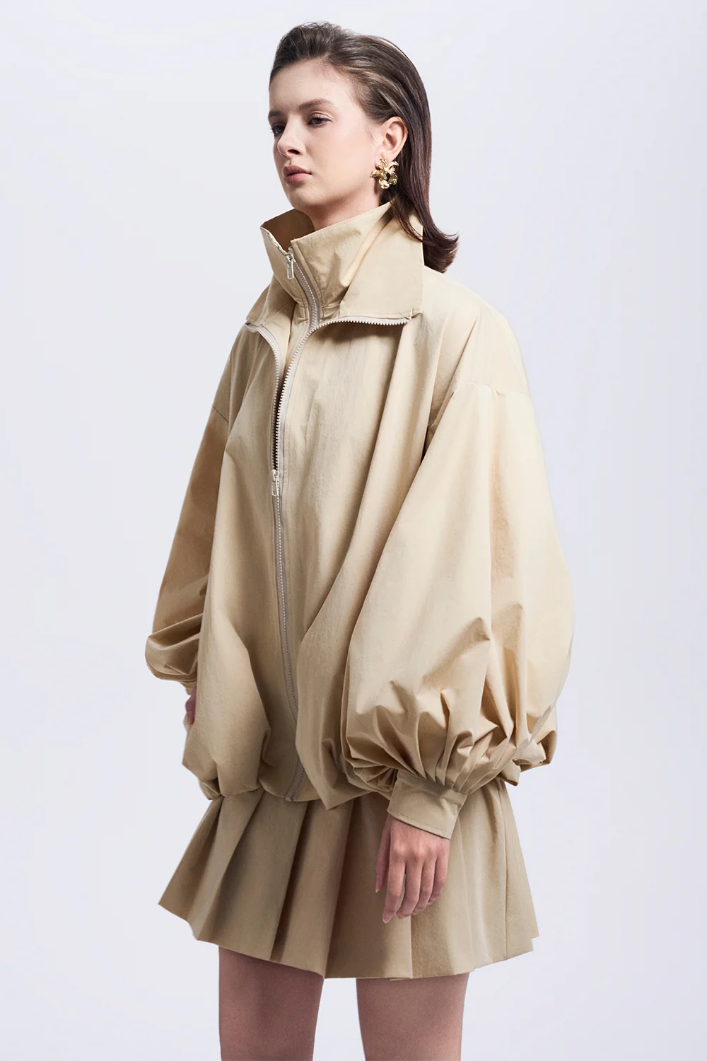Clara Blouson Cuff Sleeved Khaki Silk Jacket