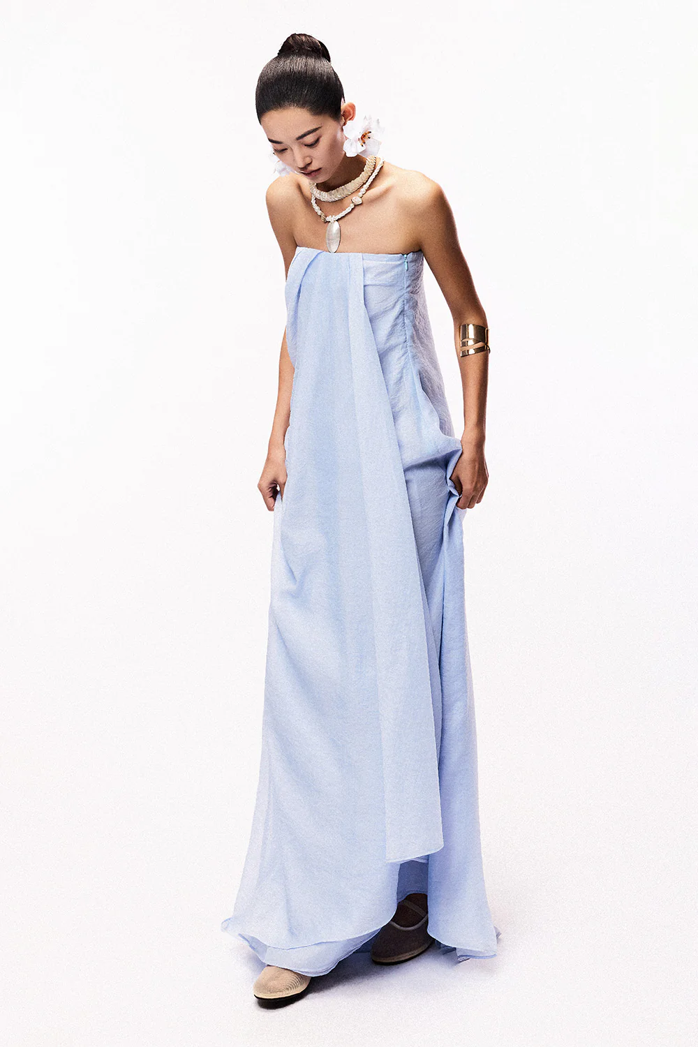 June Halter Cold Shoulder Sleeved Twill Ankle Length Dress