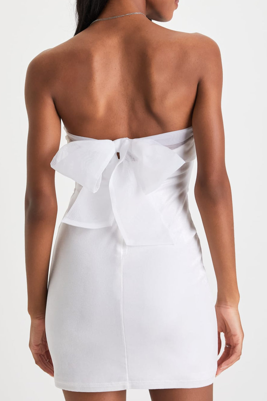 Stunning Situation White Velvet Strapless Organza Bow Mini Dress