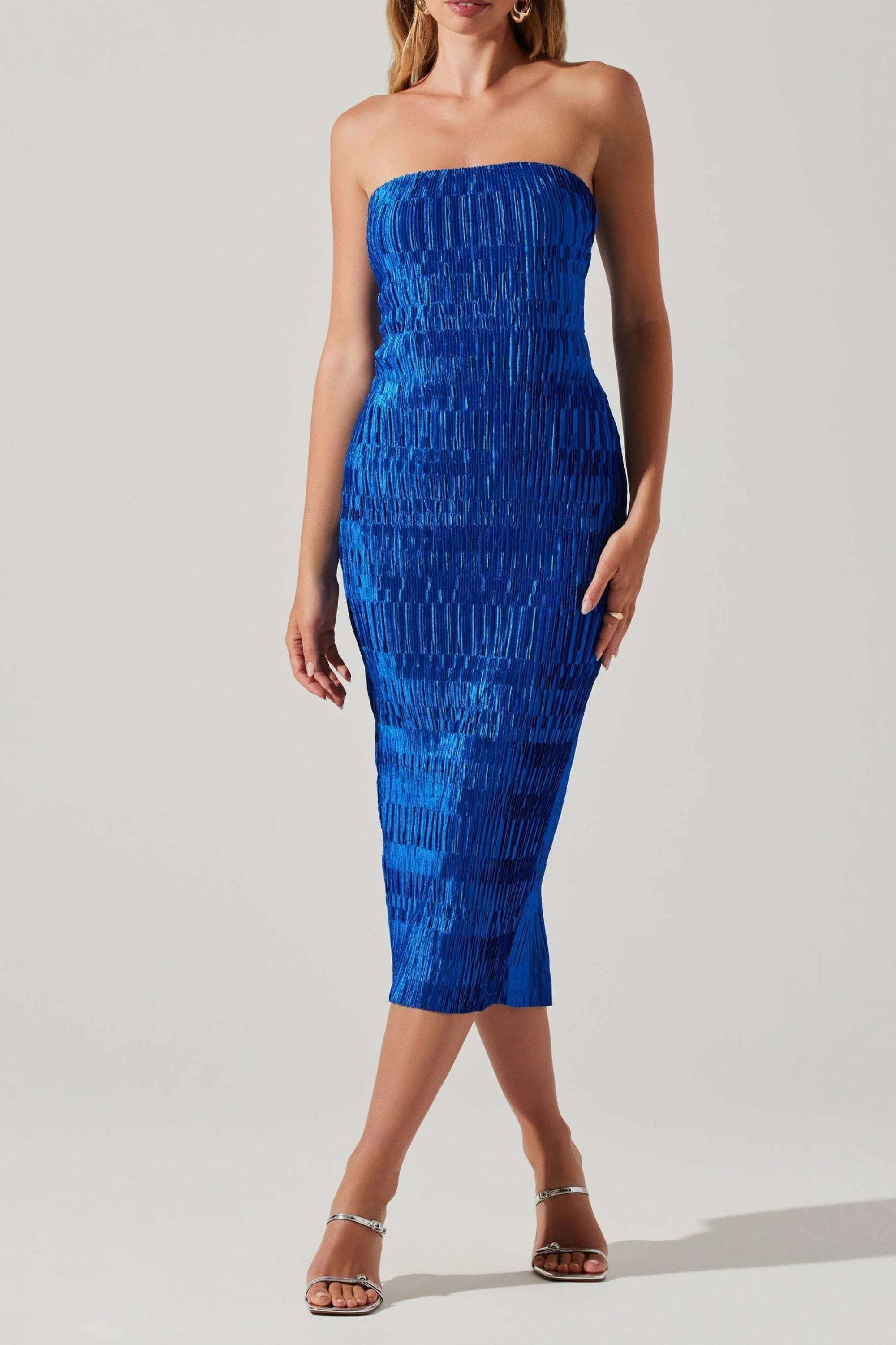 Blue Satin Sleeveless Mock Neck Maxi Dress