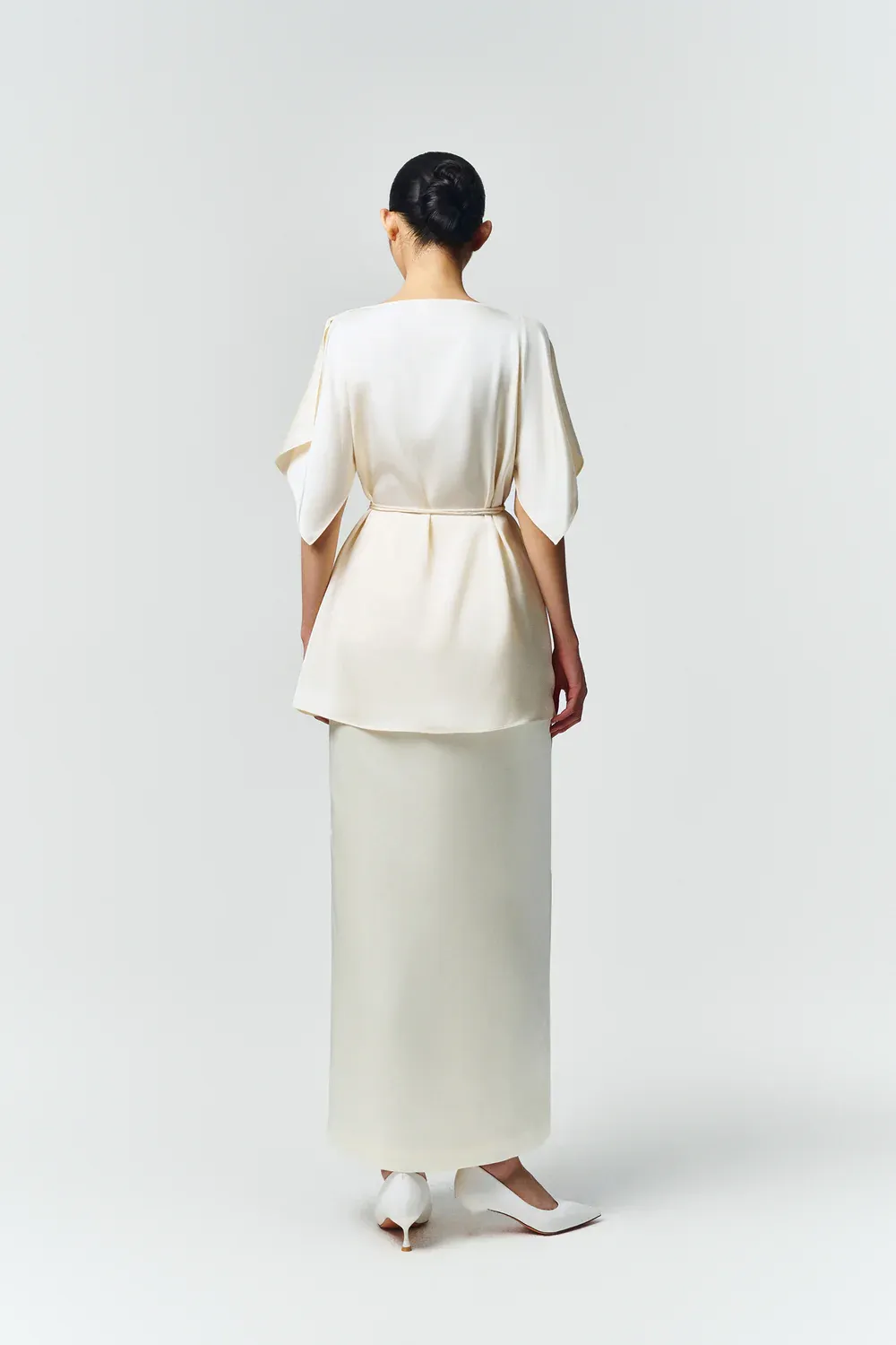 Crafted from luxurious silk, this straight silhouette top features an elegant cowl neck and wide sleeves, highlighted by artful draping. Expertly tailored for a sophisticated touch, it seamlessly transitions from professional events to evening gatherings.