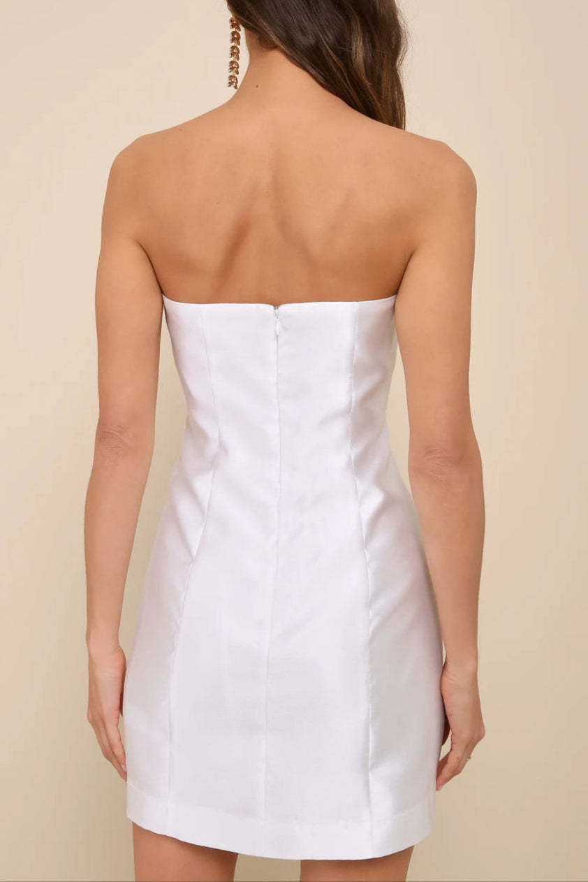 Charming Destiny White 3D Floral Applique Strapless Mini Dress