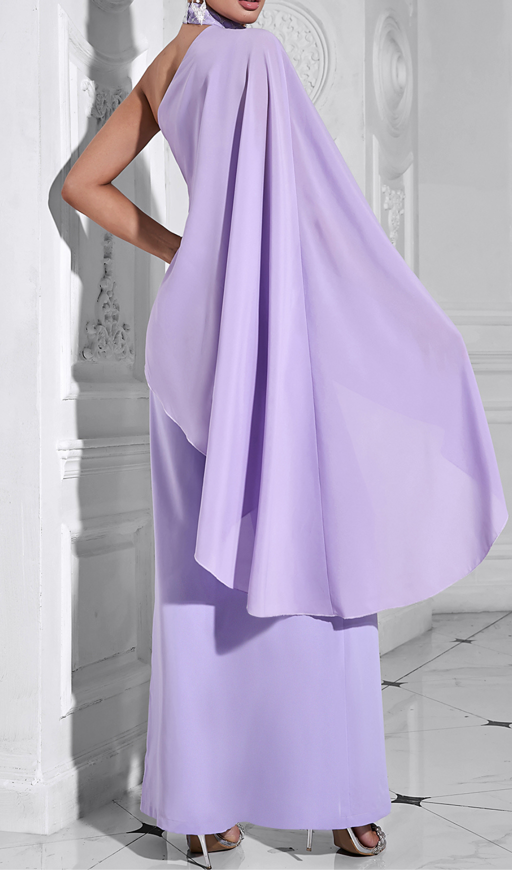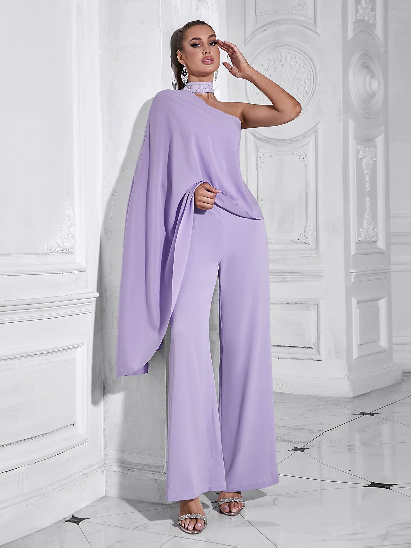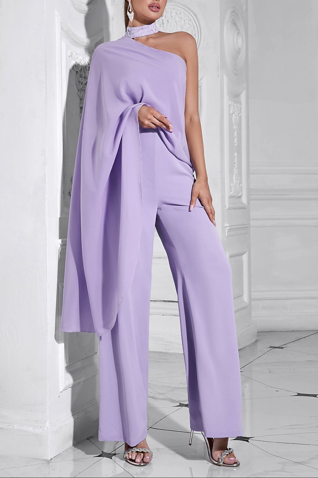 With its elegant halter neckline and shawl detailing, this jumpsuit effortlessly combines comfort and sophistication. Made with high-quality materials, it's perfect for a standout look. Elevate your wardrobe with this stunning jumpsuit.