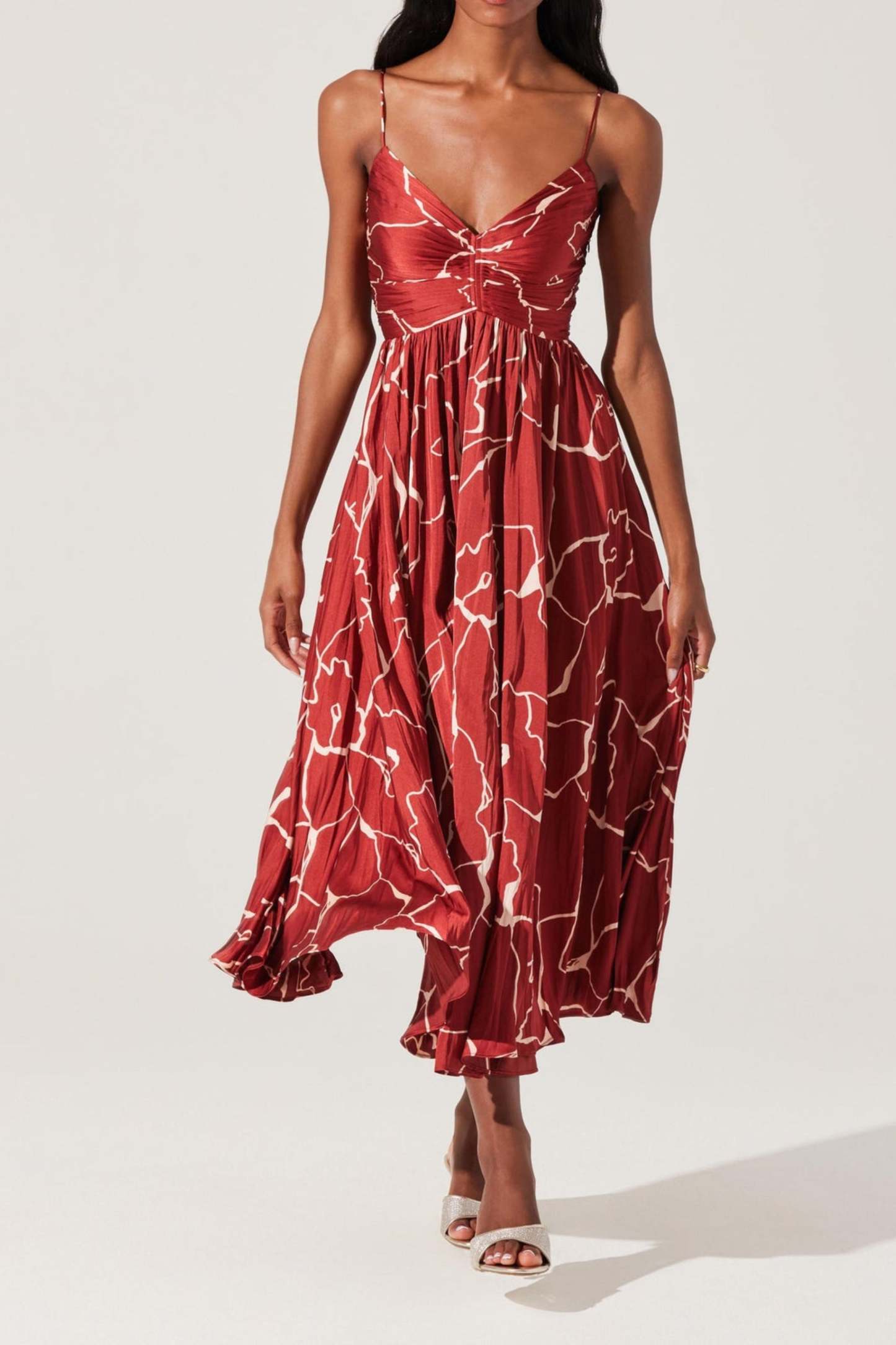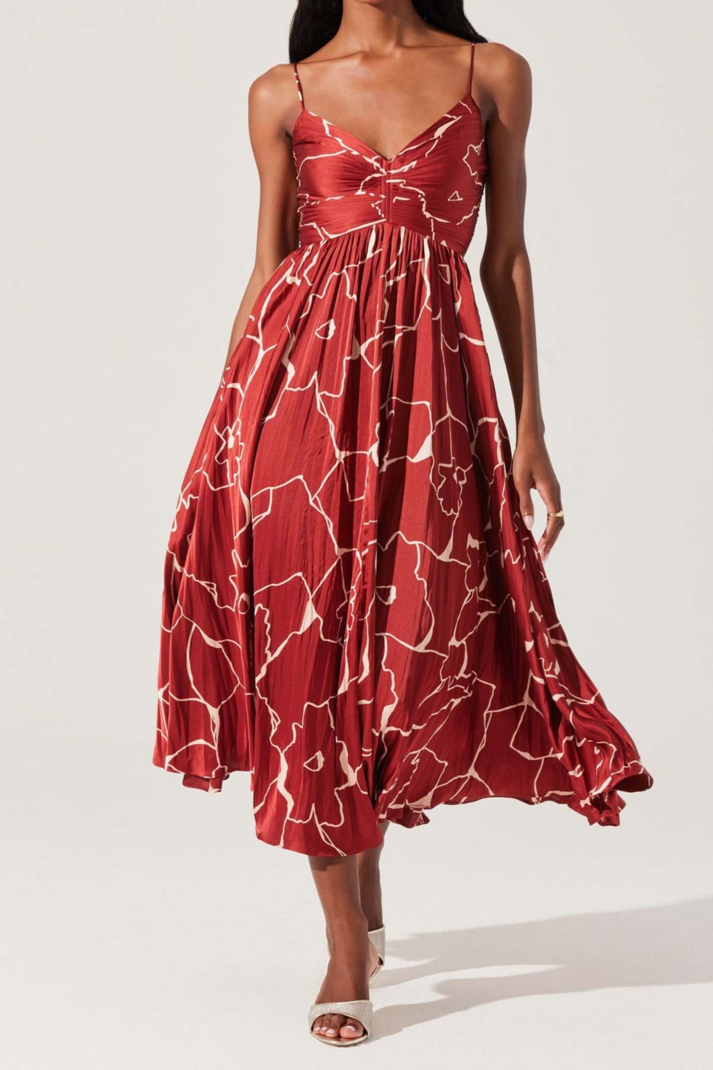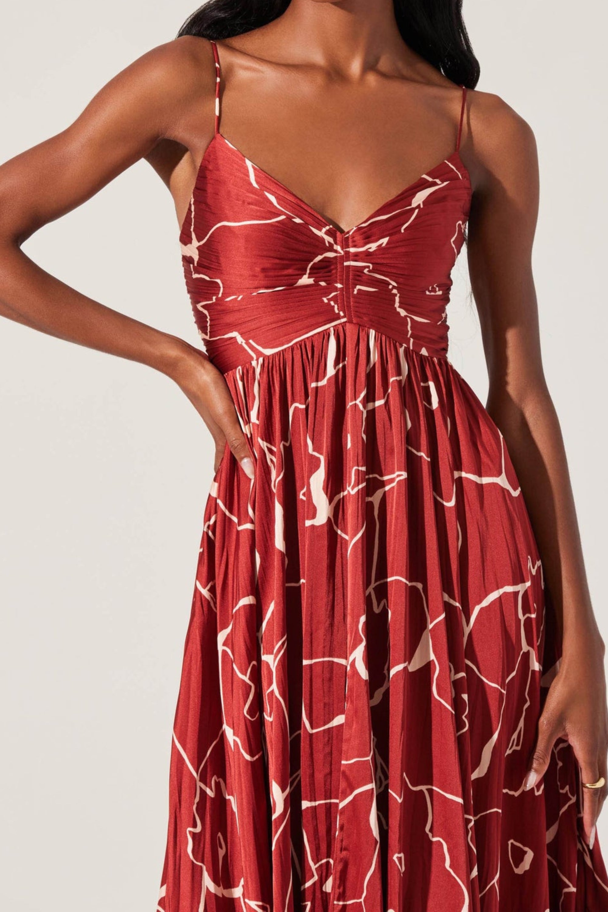 The Maeve Pleated Midi Dress features a timeless pleated design that adds texture and movement to this classic midi dress. Crafted from high-quality materials, this dress offers comfort and durability while the pleated detailing creates an elegant and sophisticated look. Perfect for any occasion, the Maeve Pleated Midi Dress will become a staple piece in your wardrobe.