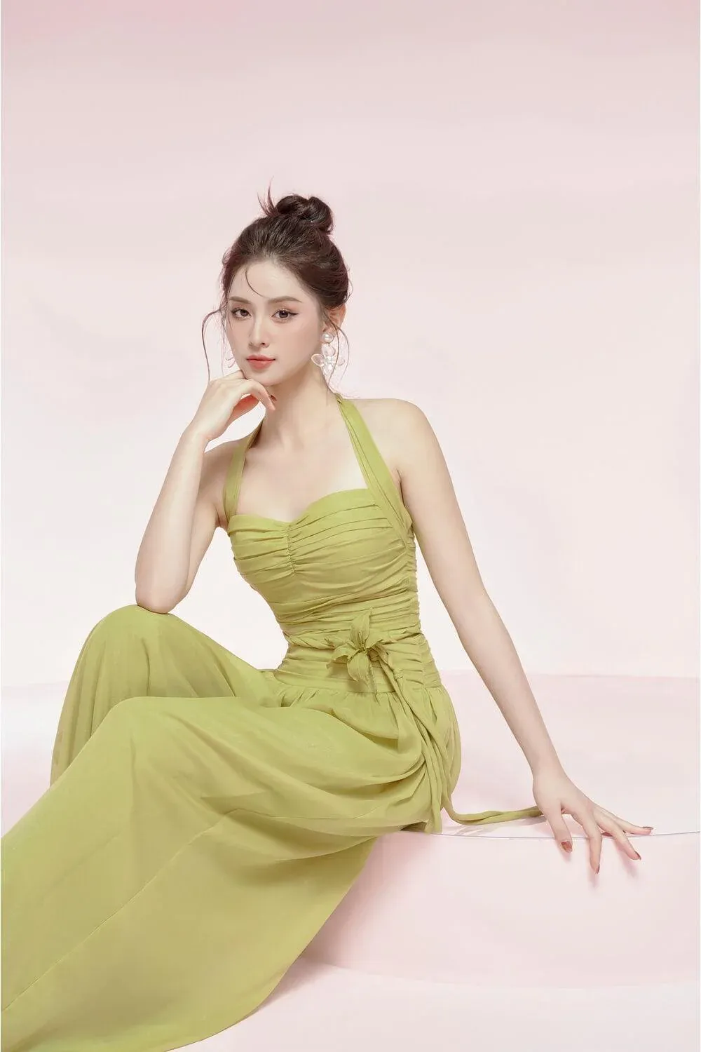 The jumpsuit offers elegance in a classic and timeless silhouette. Crafted with a gathered body and straight wide legs, the halter neckline is finished with a chest cup for a comfortable, flattering fit. A stunning statement piece for any occasion.
