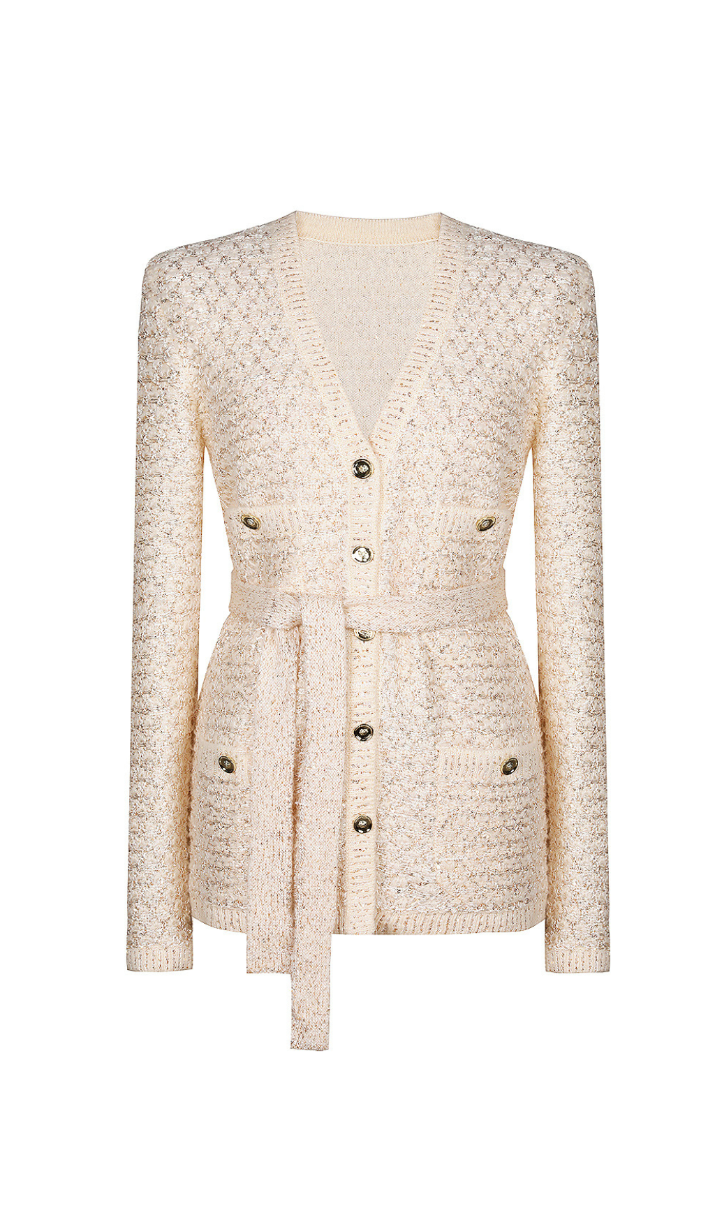 sequin knit v-neck cardigan in beige