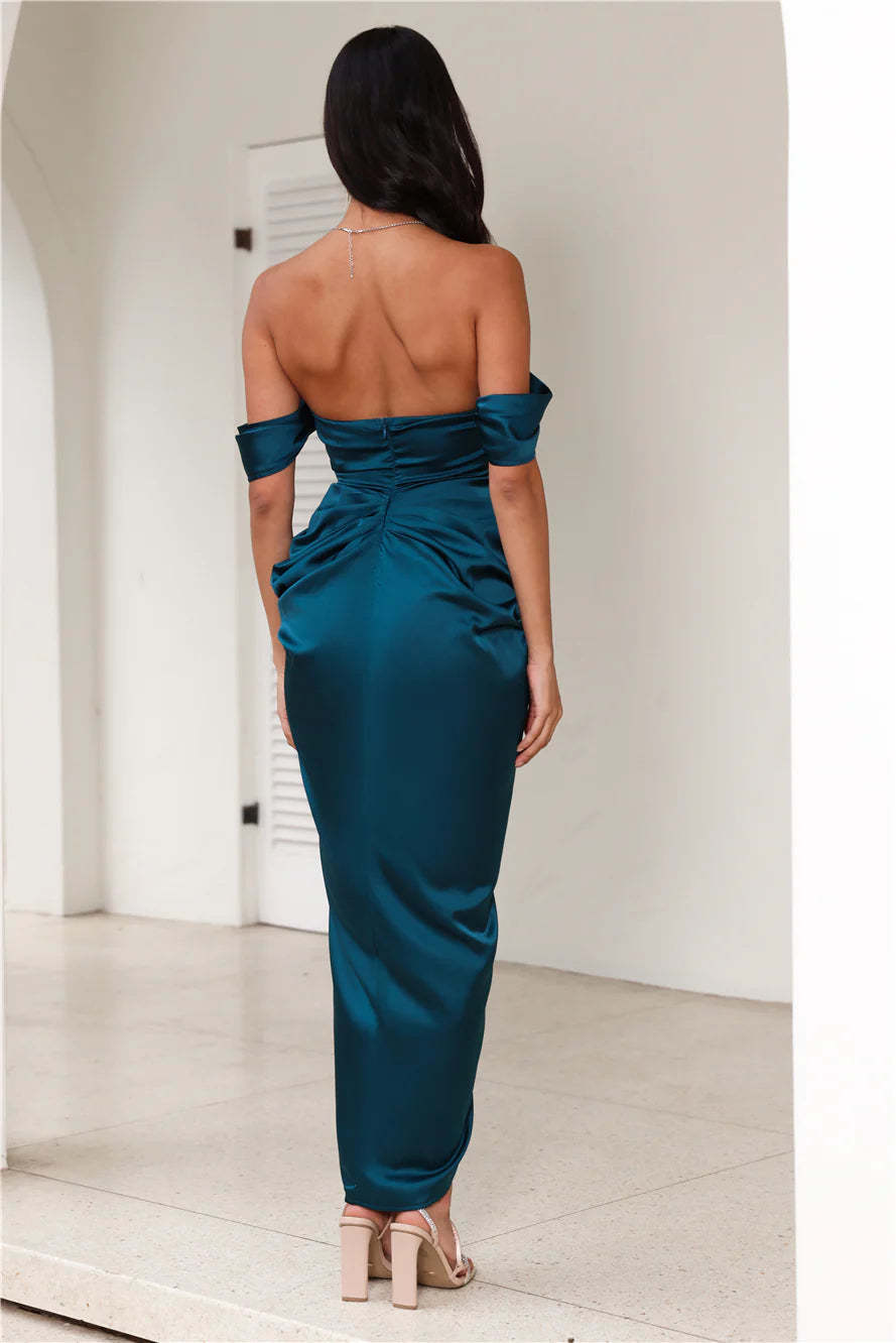 Get ready to turn heads in this stunning teal strapless satin midi dress! Its sleek and sophisticated silhouette will make you feel confident and elegant at any event. The strapless design adds a touch of glamour, while the satin fabric adds a luxurious feel. Perfect for any special occasion!